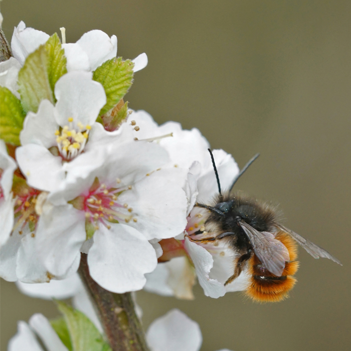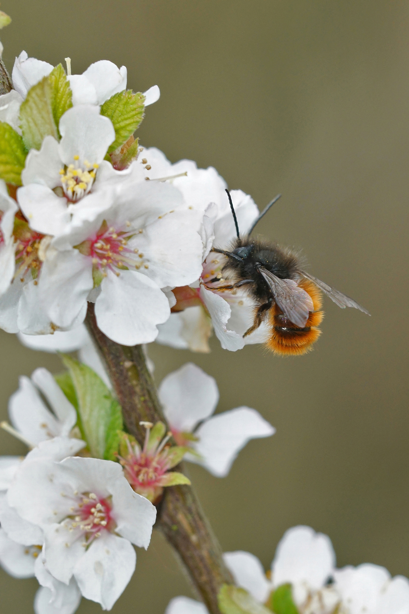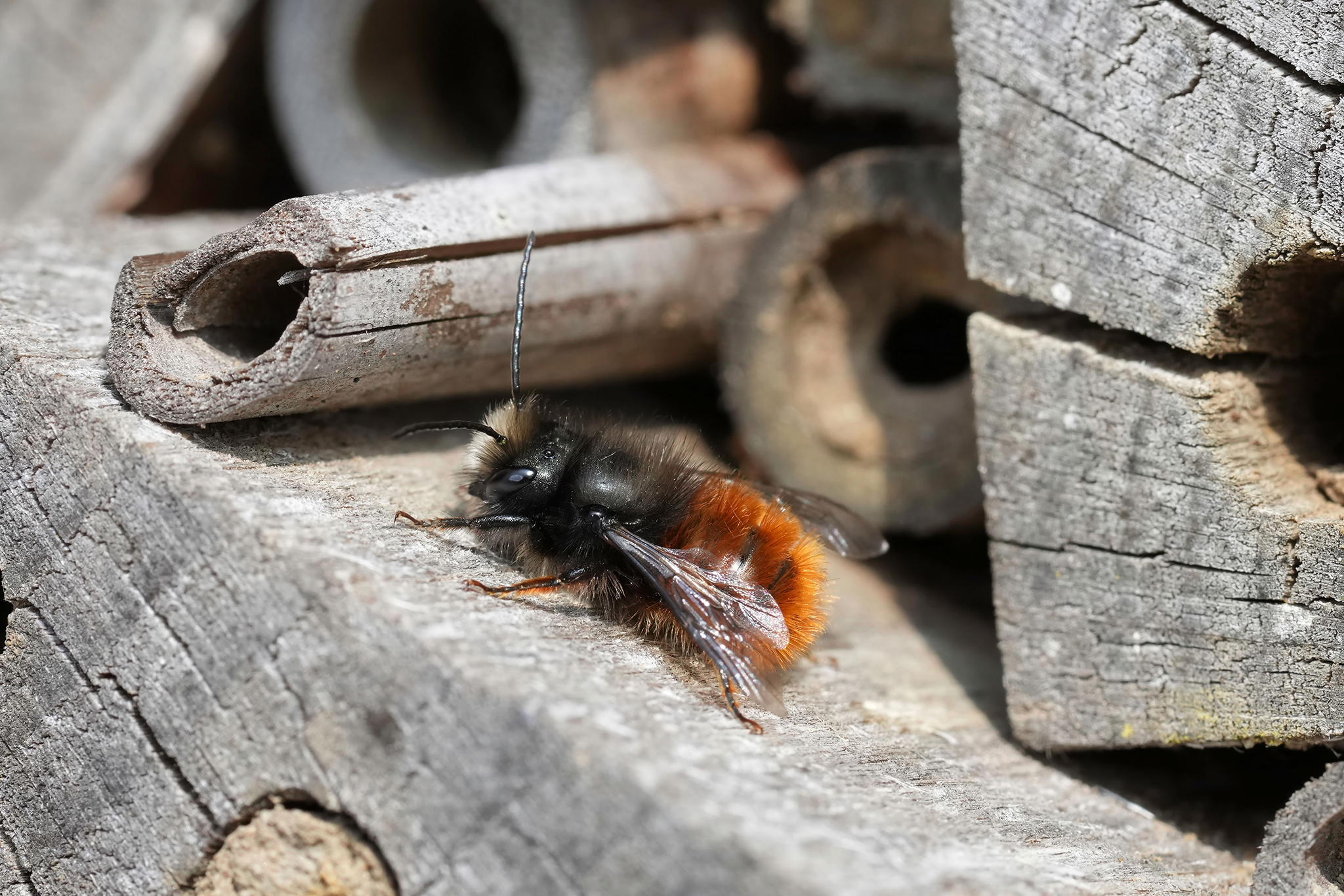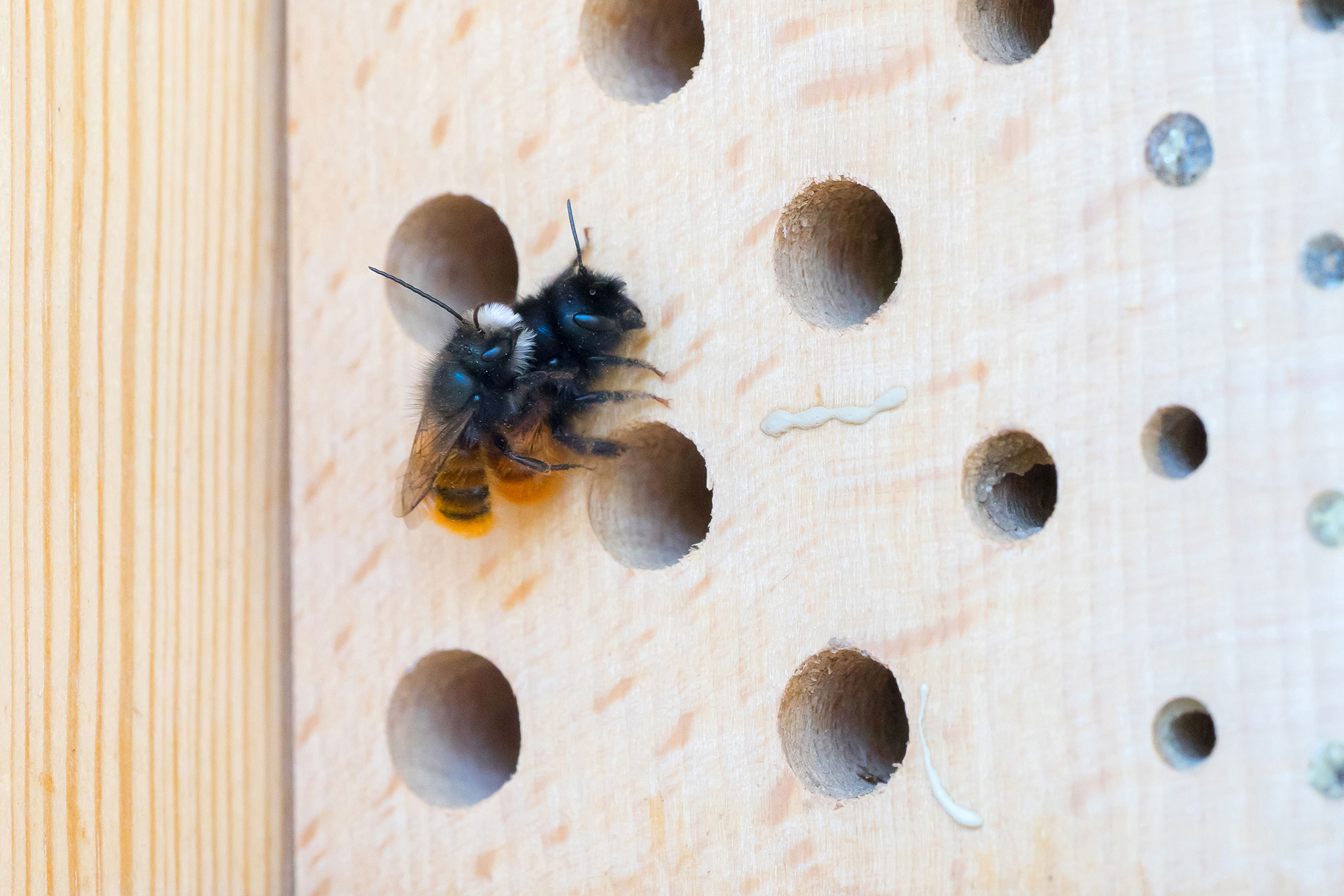 Sie ist nicht sehr wählerisch: Pollen und Nektar von fast allen Blütenpflanzen werden genutzt. Diese Mauerbiene ist auch ein ausgezeichneter Obstbaumbestäuber.