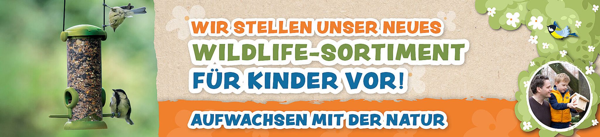 Wir möchten Kinder dazu ermutigen, sich mit der Natur vertraut zu machen und eine lebenslange Liebe zu ihr zu entwickeln. Deshalb haben wir eine ganze Palette bunter, lustiger und einfach zu benutzender Wildtierprodukte für Kinder entwickelt, darunter Futterhäuser, Futter und Bausätze zum Selberbauen!