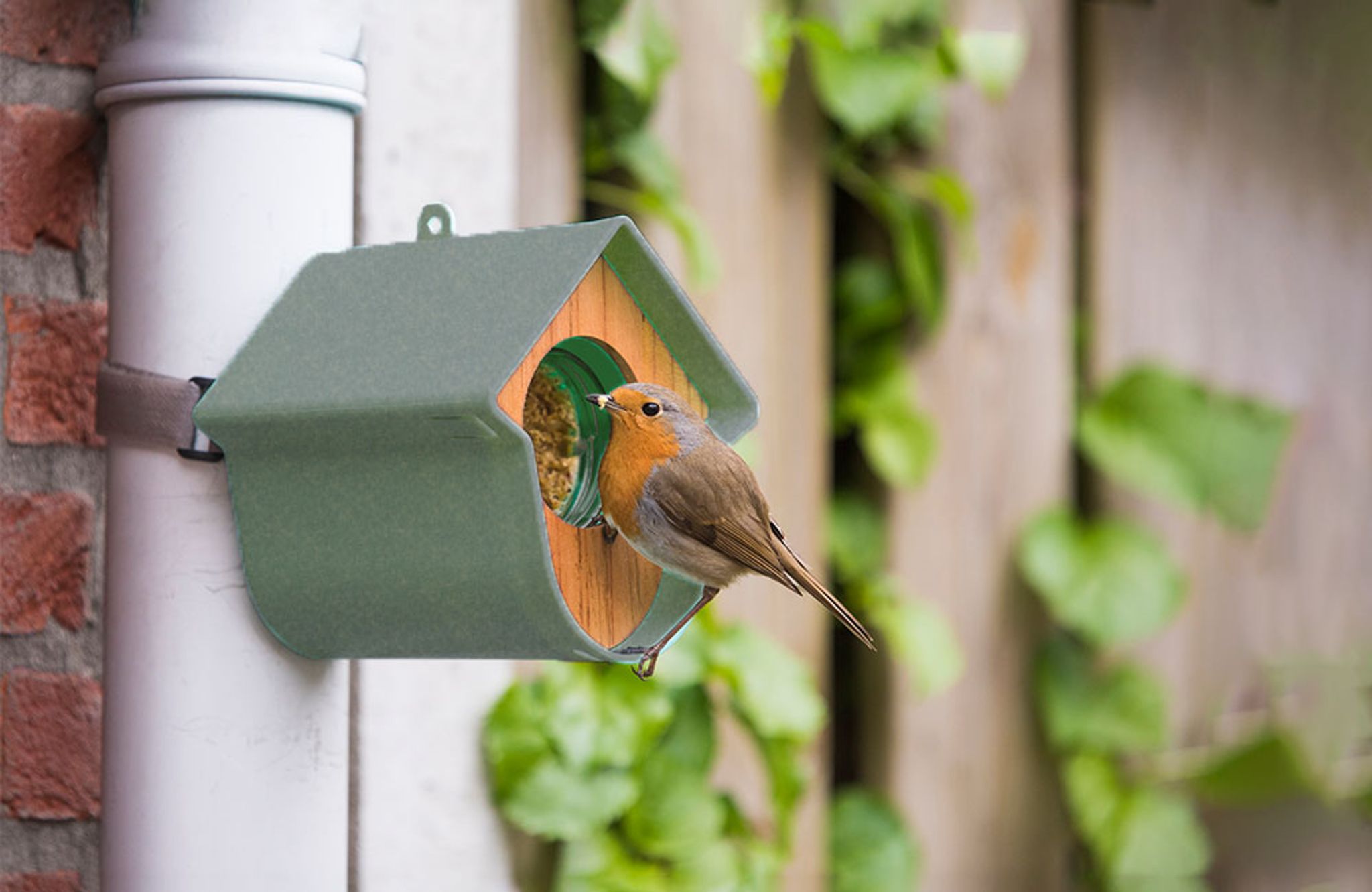 Es gibt spezielle Futtersysteme, die an Balkongeländern und Fenstern angebracht werden können. Hiermit sparen Sie nicht nur Platz, sondern Sie können die Vögel auch von Nahem beobachten.